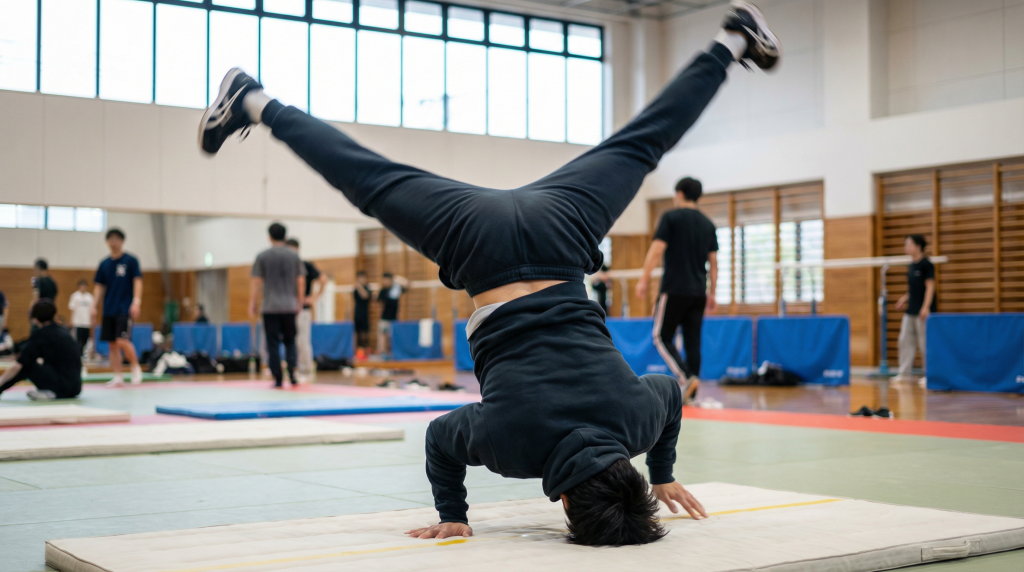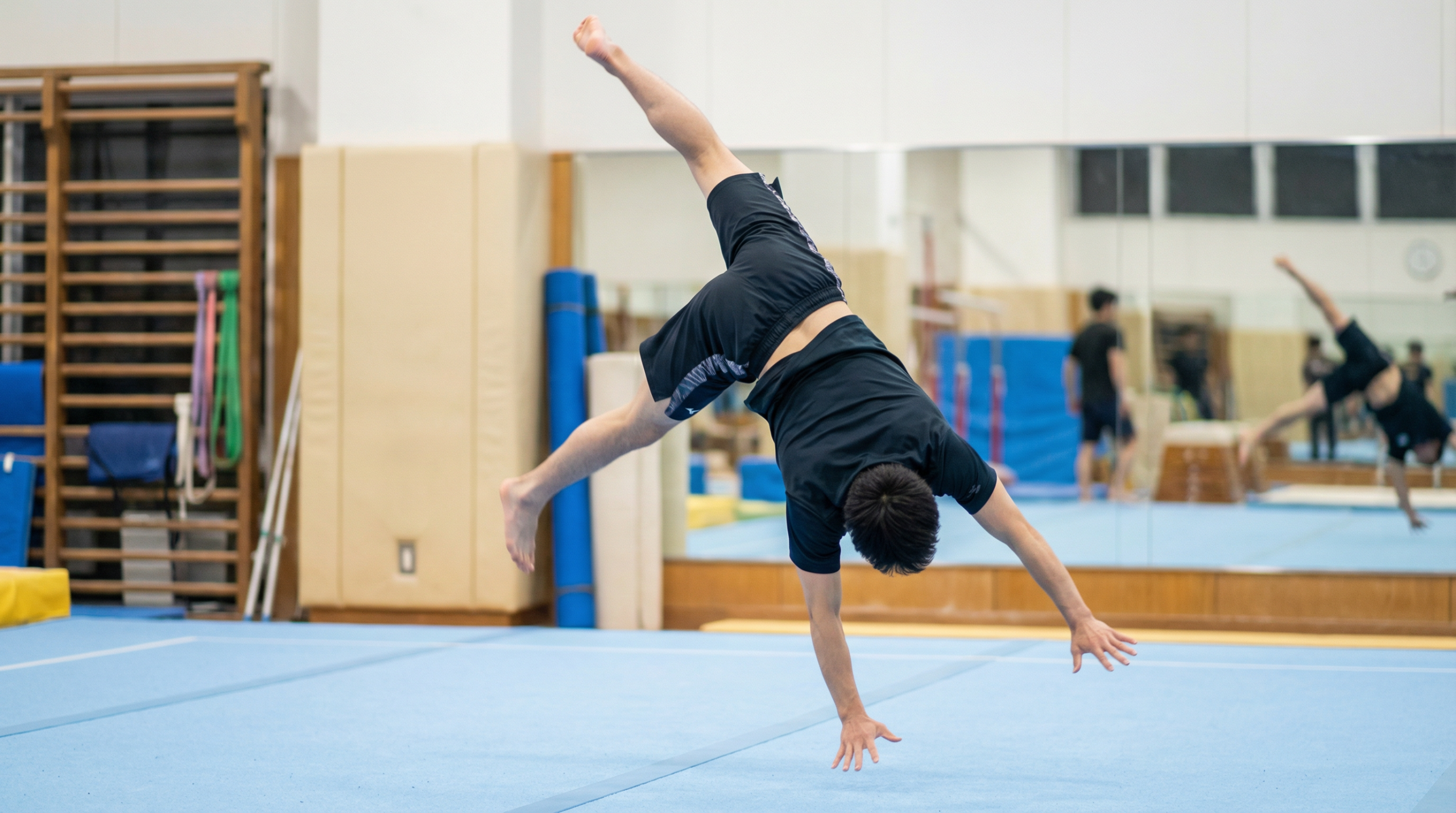 チアや体操、ダンスで高得点を狙うには、評価が高いアクロバット技の習得が不可欠です。