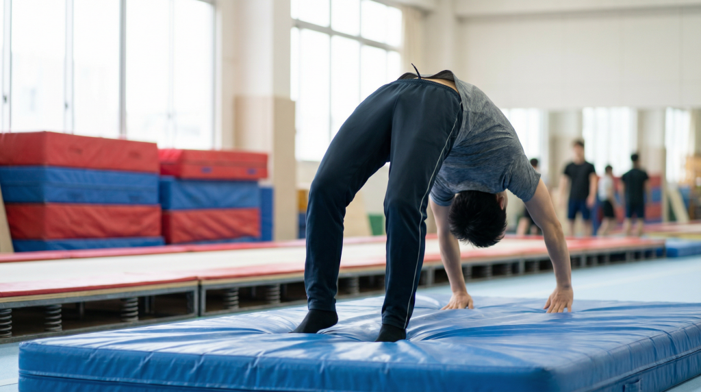 バク転の練習をするうえで、安全性・設備の確認は必須です。